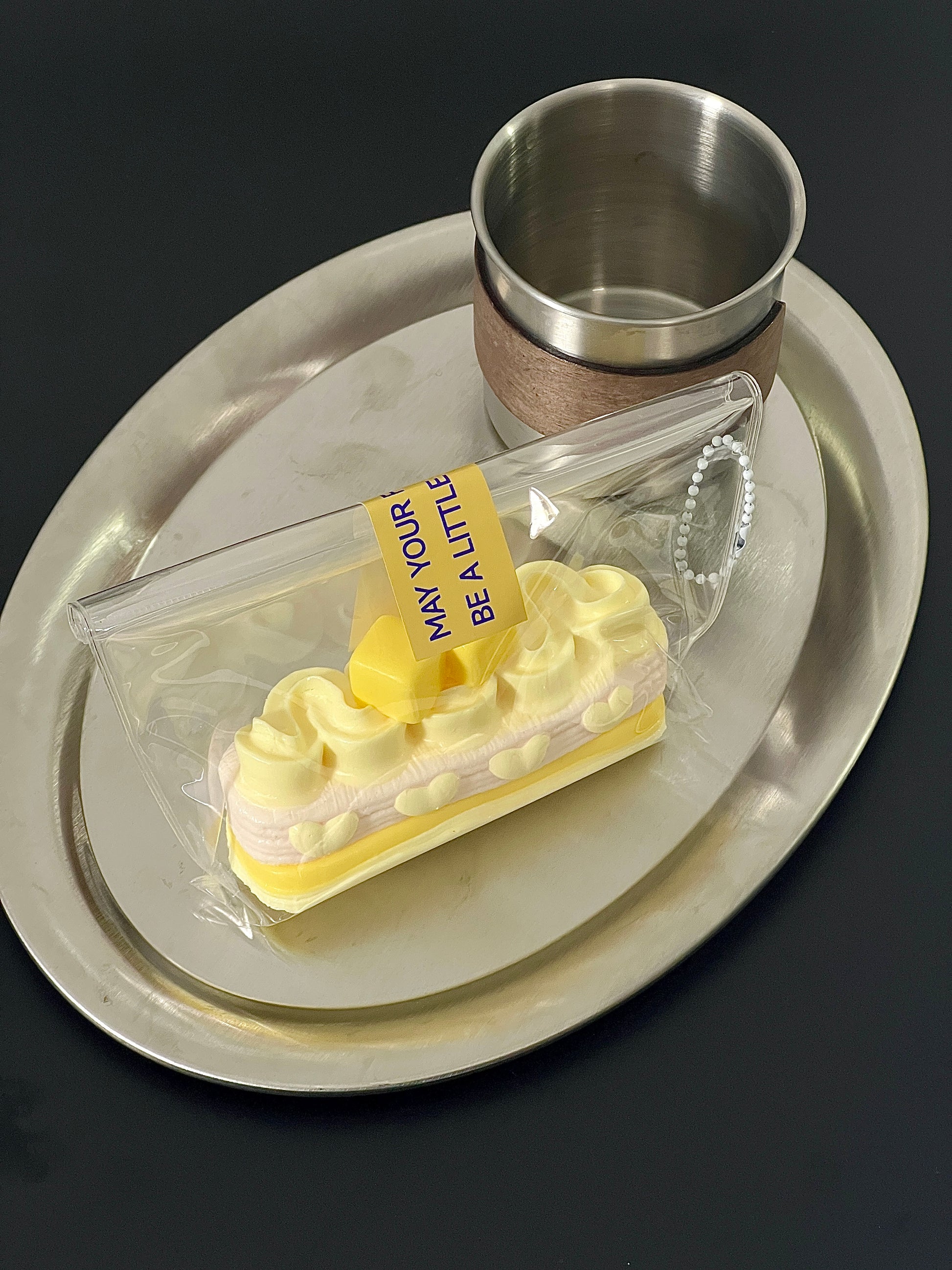 Brighten your day with the Butter Bliss Squishy — a dreamy dessert slice topped with mini butter cubes and heart-shaped cream swirls. Handmade with food-grade silicone, this slow-rising squishy looks like a bakery treat but is actually your new stress-relief companion.